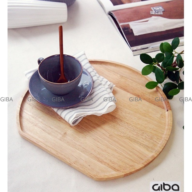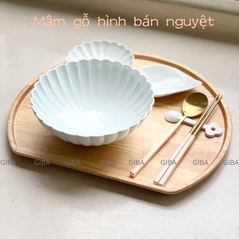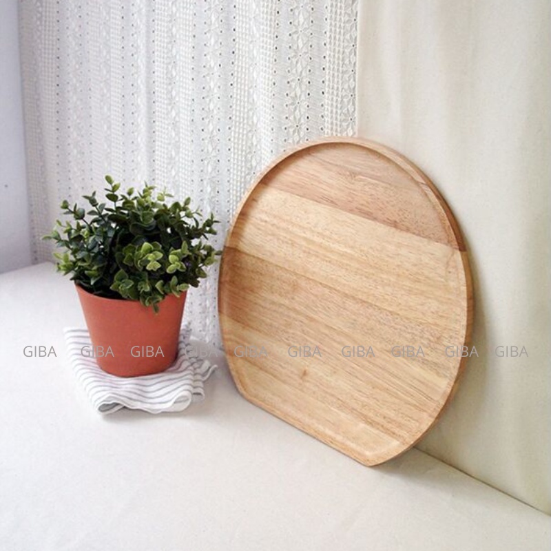 Khay gỗ tròn Mâm gỗ đựng đồ ăn bằng gỗ, khay gỗ decor hình bán nguyệt GiBa