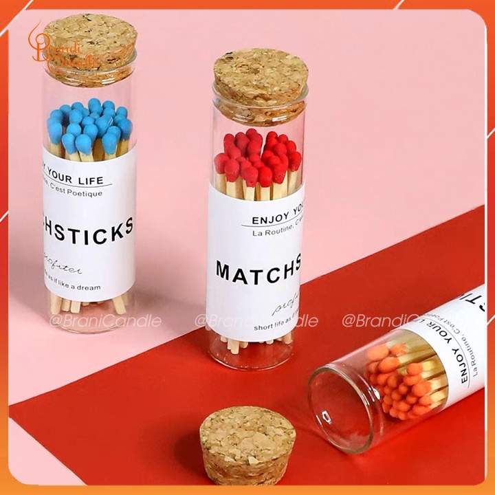 🍶 Hũ diêm thủy tinh với que diêm dài và đầu diêm nhiều màu sắc cho bạn lựa chọn
