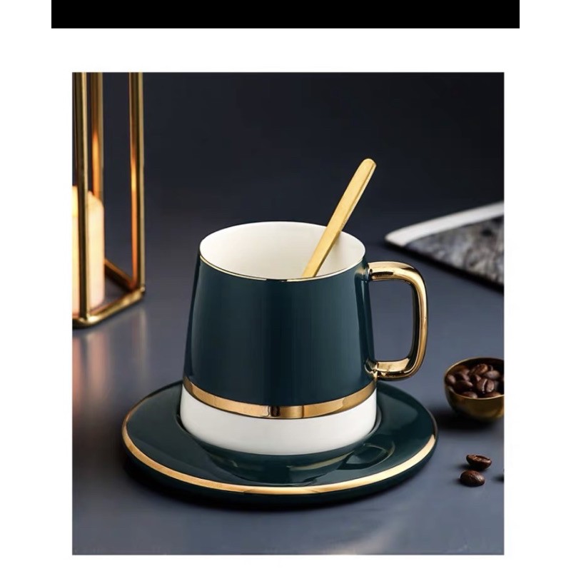 Nhà cửa & Đời sống > Bộ đồ bàn ăn > Dĩa || Cốc cà phê sứ phong cách Bắc Âu tặng kèm đĩa sứ xanh, thìa inox 304 mạ vàngCòn hàng