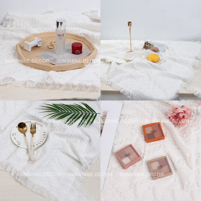 Nhà cửa & Đời sống > Trang trí nhà cửa > Khăn trải bàn || Khăn phủ Sofa khăn picnic trắng tua rua phong cách BohemianCòn hàng