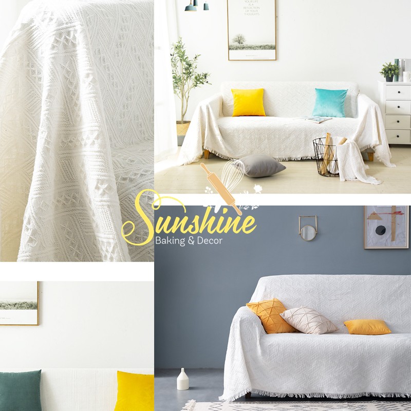 Với tấm khăn này bạn có thể dùng làm khăn phủ Sofa, vừa tránh bụi bẩn, vừa làm chăn đắp, vừa trang trí cho ngôi nhà của mình. Hay dùng như một tấm thảm picnic màu trắng vừa sang vừa cá tính chụp ảnh siêu đỉnh.