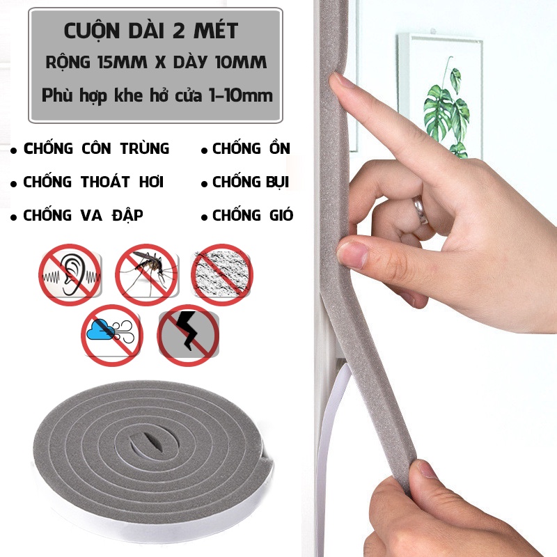 Nhà cửa & Đời sống > Nội thất > Miếng chặn cửa || Cuộn ron gioăng mút xốp dán khe khung cửa cách âm giảm chấn chống bụi dài 2 métCòn hàng