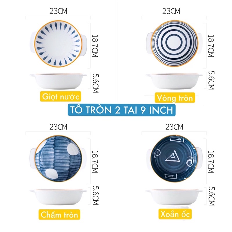 S55.TÔ TRÒN 2 TAI VIỂN VÀNG 8 INCH PHONG CÁCH NHẬT BẢN
