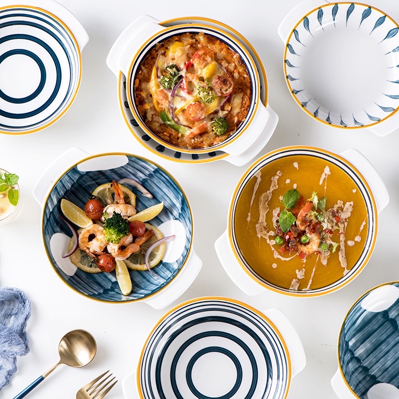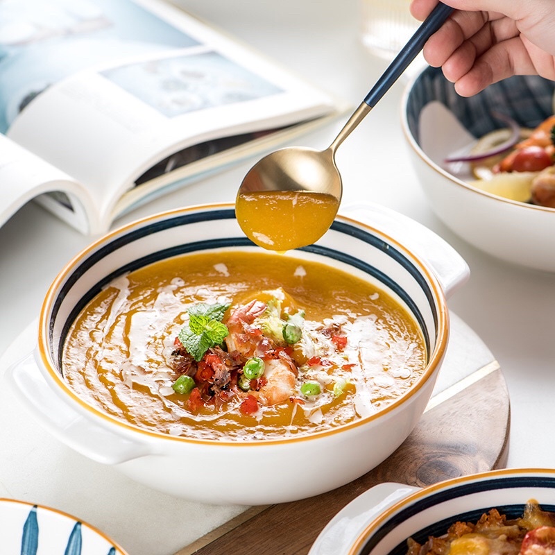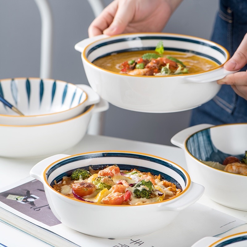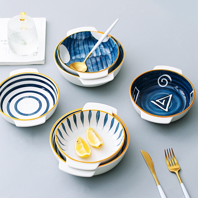 Nhà cửa & Đời sống > Bộ đồ bàn ăn > Tô || S55.TÔ TRÒN 2 TAI VIỂN VÀNG 8 INCH PHONG CÁCH NHẬT BẢNCòn hàng