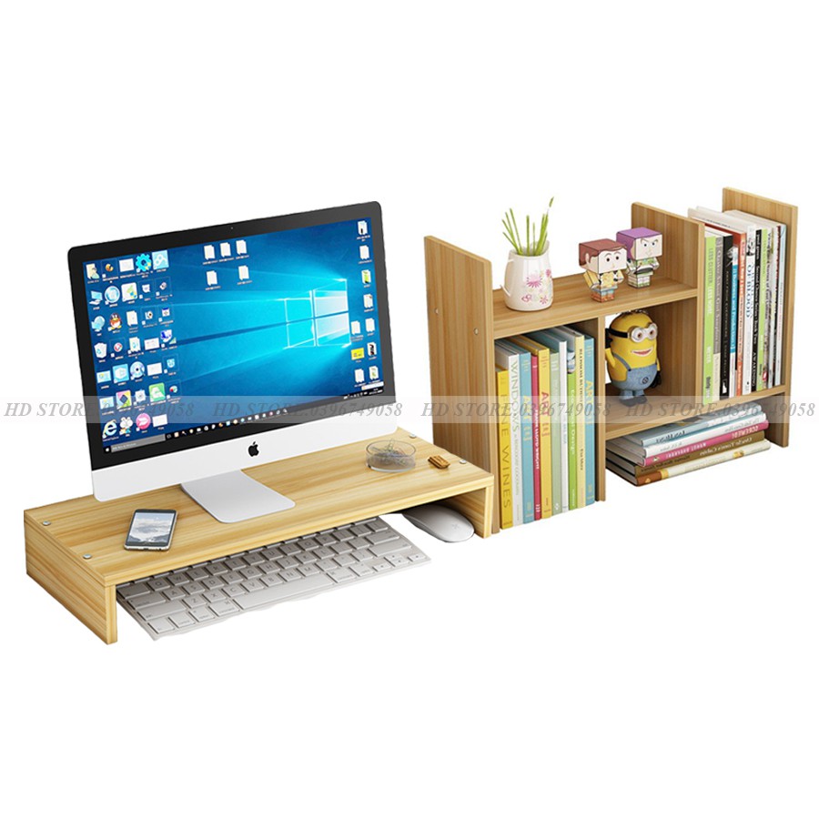 COMBO KỆ ĐA NĂNG - KỆ MÁY TÍNH ĐỂ BÀN LÀM VIỆC DECOR - LẮP GHÉP MÀU VÂN GỖ