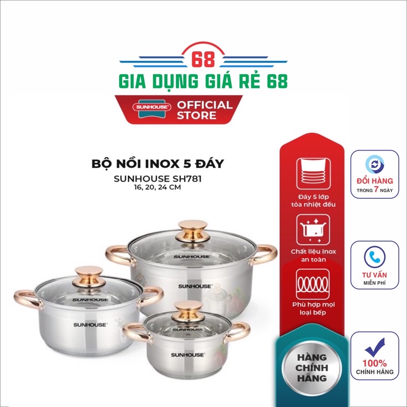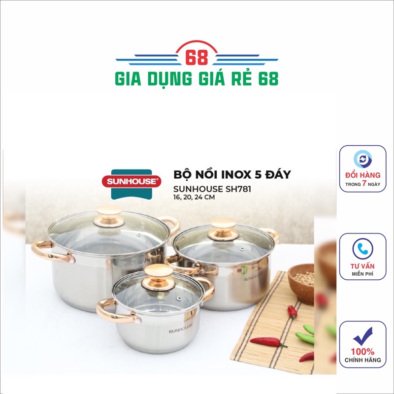 Bộ nồi inox 5 đáy SUNHOUSE SH781