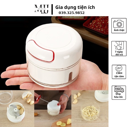 Máy xay tỏi ớt mini cầm tay kéo dây đa năng.