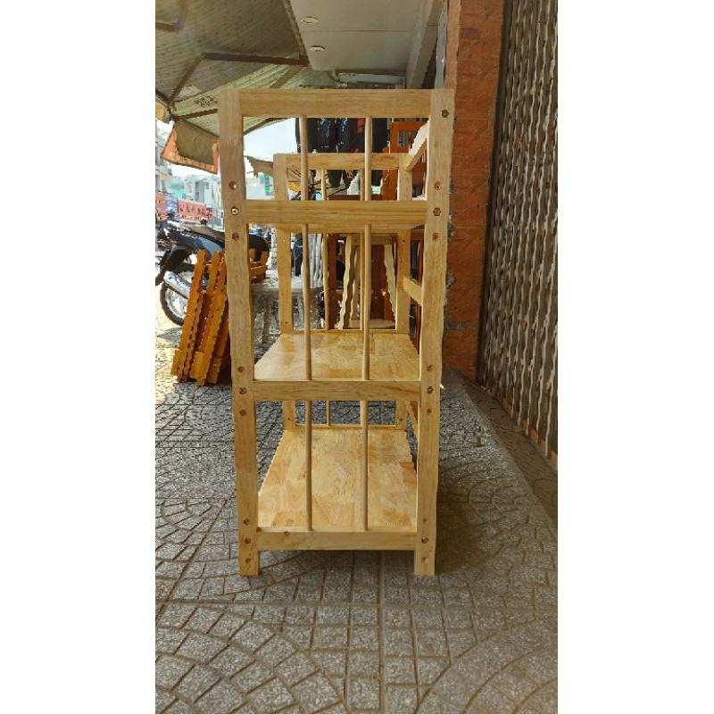 - Chất liệu : gỗ cao su tự nhiên- Kích thước 3 tầng : cao 91cm. sâu 28cm