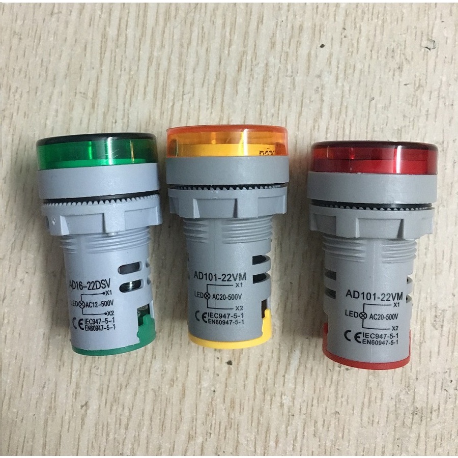 Đèn báo Volt, Đèn báo điện áp phi 22 màu đỏ vàng xanh