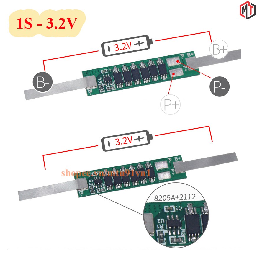 Mạch sạc và bảo vệ pin 1S 3.2V LiFePO4 - Lithium Sắt Photphat - Pin 32650