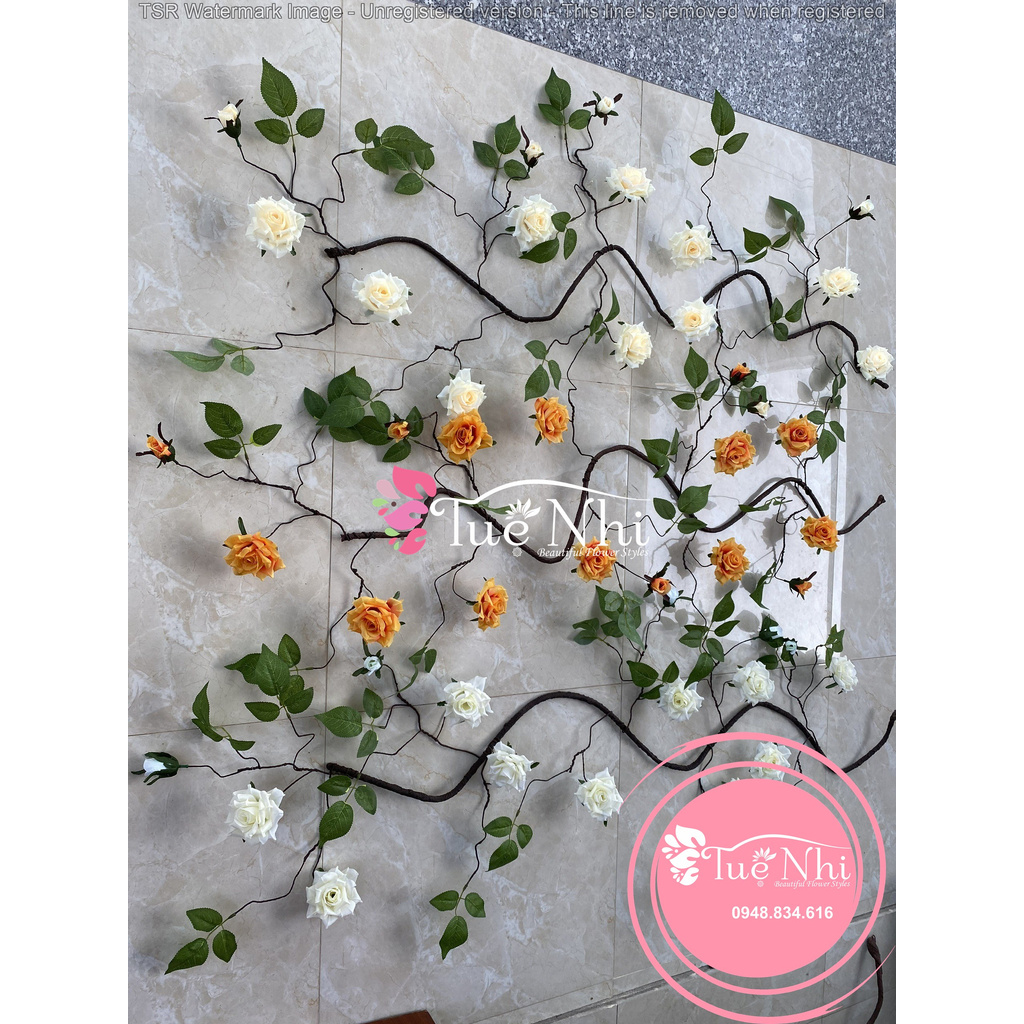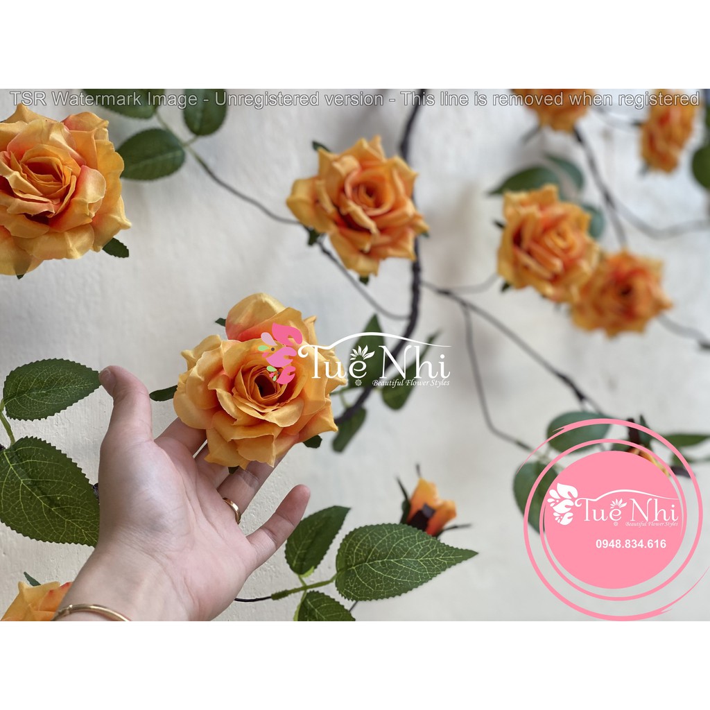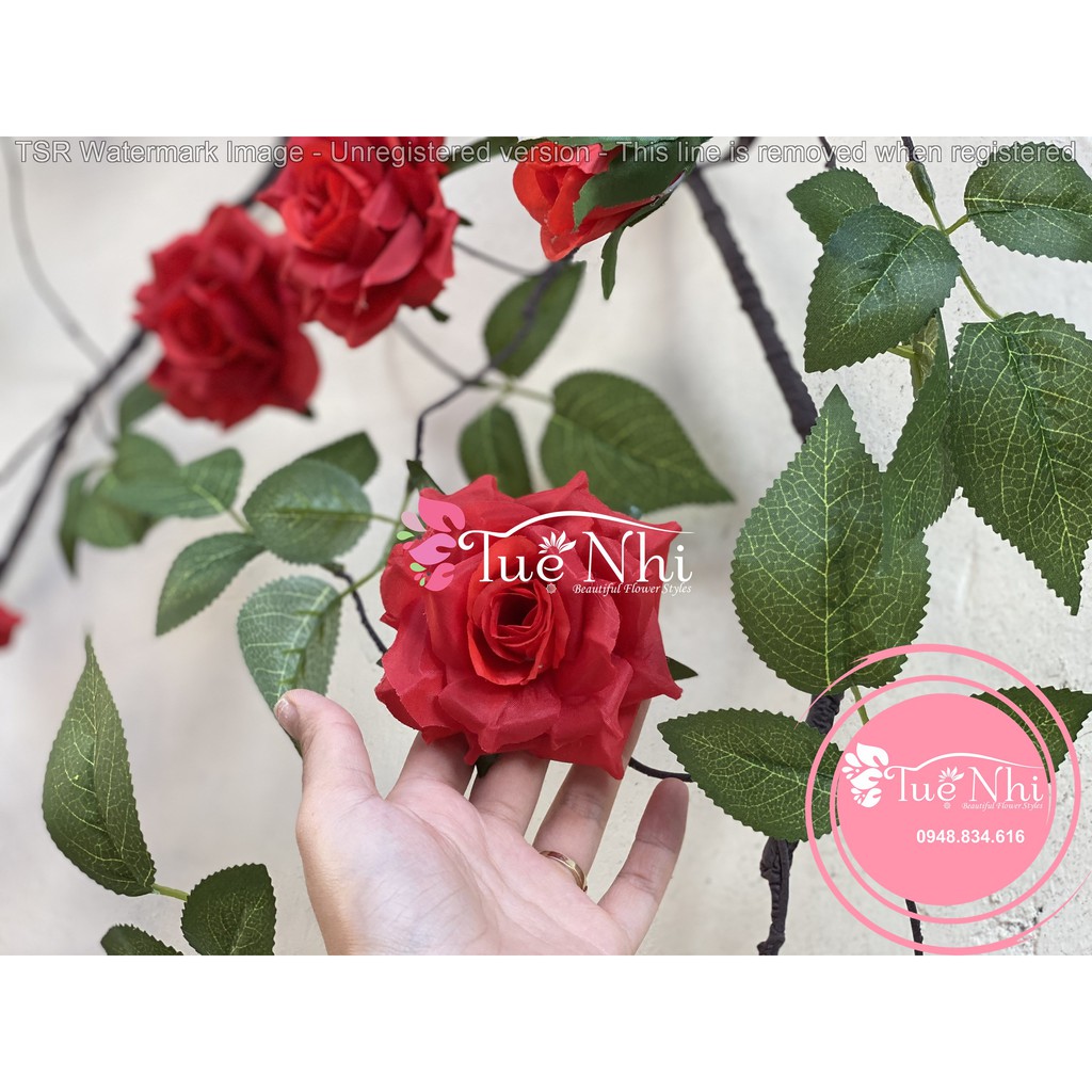 👉 1 dây gồm 10 hoa ,5 nụ và lá. Kích cỡ hoa 9cm