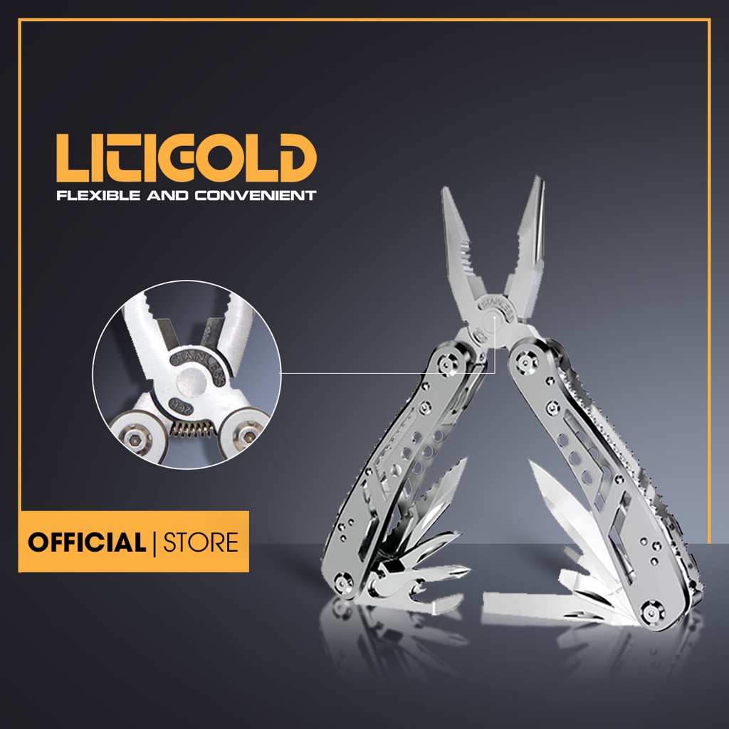🔰 Bộ kìm đa năng Litigold là sự kết hợp các dụng cụ như kéo, kìm, dao, cưa gỗ, tua vít, và các dụng cụ khác trong một thân máy.