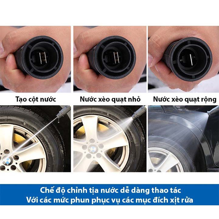 - Súng xịt kết nối với máy rửa xe dùng để rửa xe, tưới cây, vệ sinh nhà cửa và còn làm được hơn thế nữa.