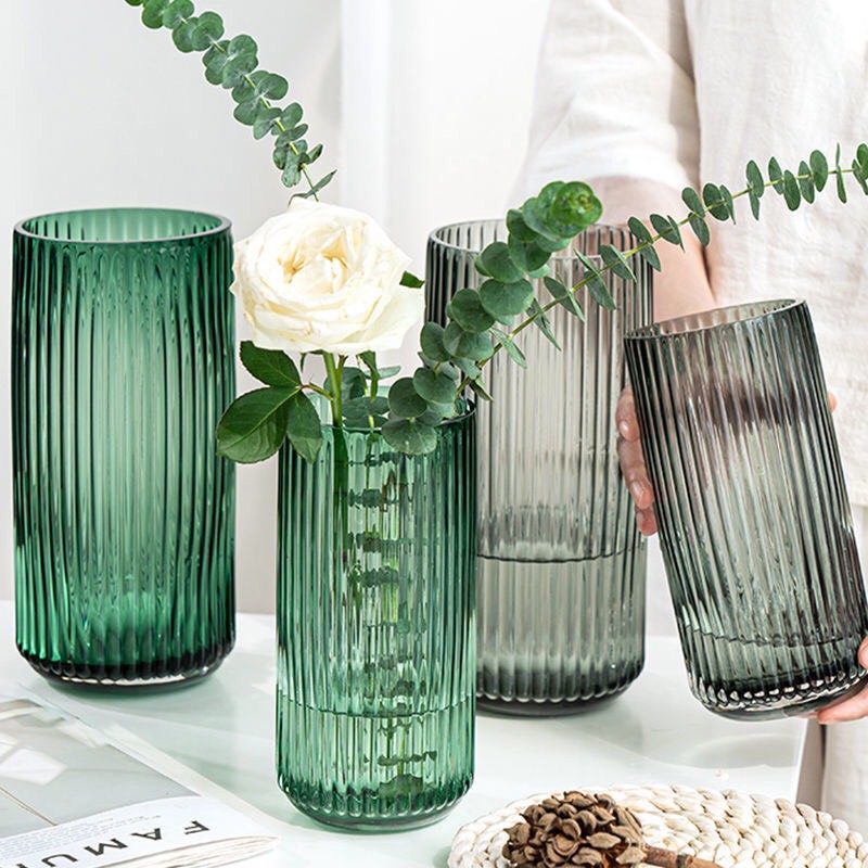 Lọ hoa thuỷ tinh vân sọc dọc Maydecor bình hoa cao cấp trang trí nhà cửa LH047