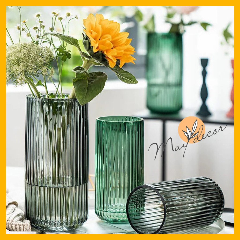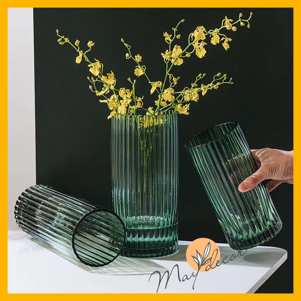 Nhà cửa & Đời sống > Trang trí nhà cửa > Bình trang trí || Lọ hoa thuỷ tinh vân sọc dọc Maydecor bình hoa cao cấp trang trí nhà cửa LH047Còn hàng