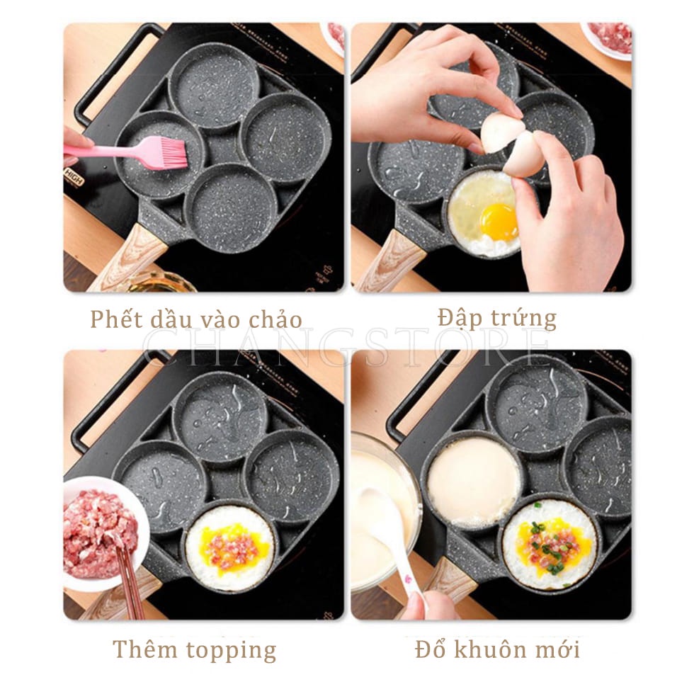 Chảo đá 4 ngăn chống dính làm bánh xèo đổ chả trứng sử dụng trên mọi loại bếp