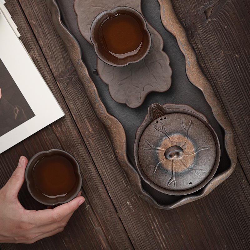Nhà cửa & Đời sống > Dụng cụ nhà bếp > Dụng cụ pha trà, cà phê || Bộ ấm trà Nhật bằng gốm thô kèm khay cao cấpCòn hàng