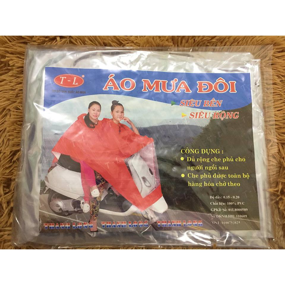 - Áo mưa đôi nhựa vi sinh trong suốt có 2 đầu tiện lợi khi chùm áo mưa, người ngồi sau có thể quan sát được cảnh vật bên ngoài một cách dễ dàng- Áo mưa nhựa vi sinh trong suốt được làm bằng vật liệu EVA
