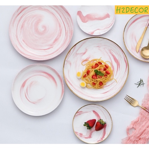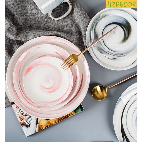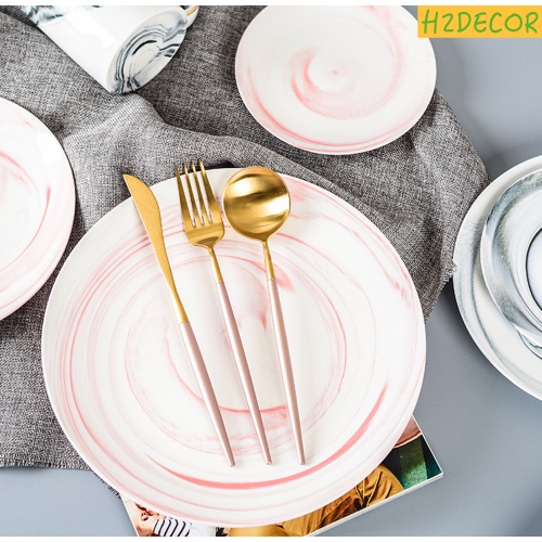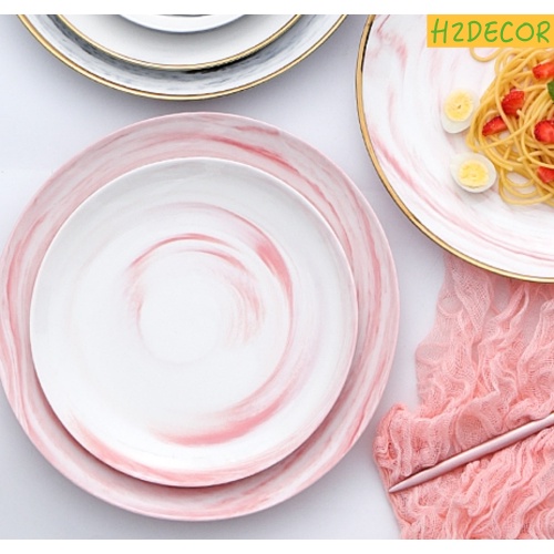 Nhà cửa & Đời sống > Bộ đồ bàn ăn > Dĩa || Đĩa tròn hoạ tiết vân mây tráng men thủ công cao cấp phong cách Bắc Âu - H2DecorCòn hàng