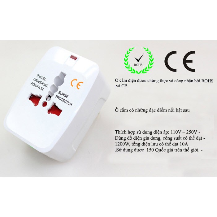- Mô tả sản phẩm:Khi đi du lịch hoặc công tác nước ngoài, bạn thường gặp rắc rối vì các thiết bị điện, điện tử có phích cắm không tương thích với ổ cắm do mỗi quốc gia có tiêu chuẩn riêng về ổ cắm. Để khắc phục khó khăn này, Ổ cắm du lịch Điện Quang ESK TV01 (Trắng) có khả năng tương thích với hầu hết các chuẩn ổ cắm khác nhau trên thế giới. Đặc biệt, sản phẩm được thiết kế tinh tế, vỏ ngoài bằng nhựa ABS - chịu được nhiệt độ cao, chống rò rỉ điện, an toàn theo tiêu chuẩn CE của châu Âu.