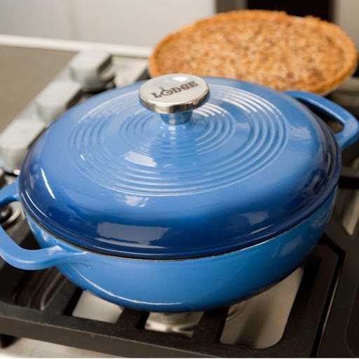 Nồi gang phủ men Lodge - Màu xanh dương nhạt 2.8L được thiết kế hiện đại và tiện dụng cho tất cả mọi người, thích hợp cho các món ninh, hầm, súp.