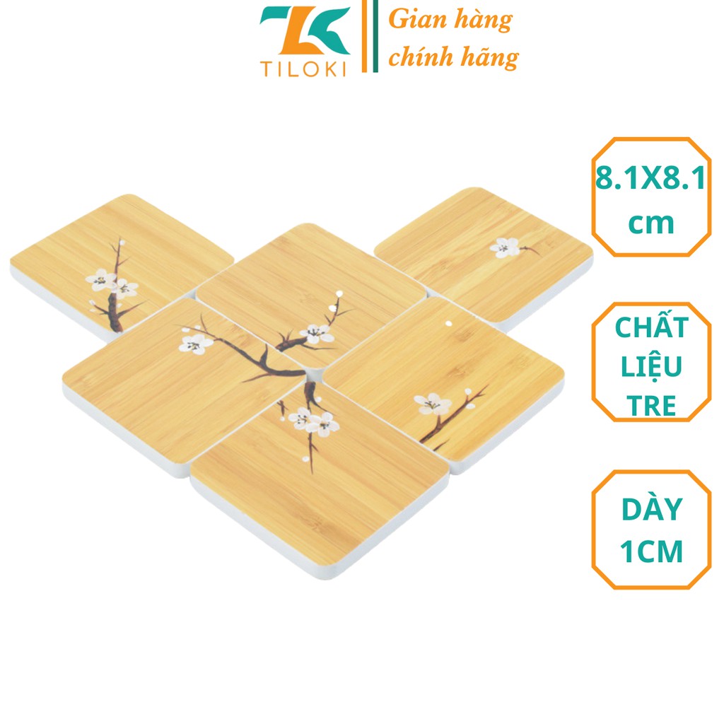 [Mã LT50 giảm 50k đơn 250k] Bộ 6 chiếc đế lót cốc, ly, chén bằng tre thiên nhiên TiLoKi TDL03 kích thước 8,1x8,1x1cm