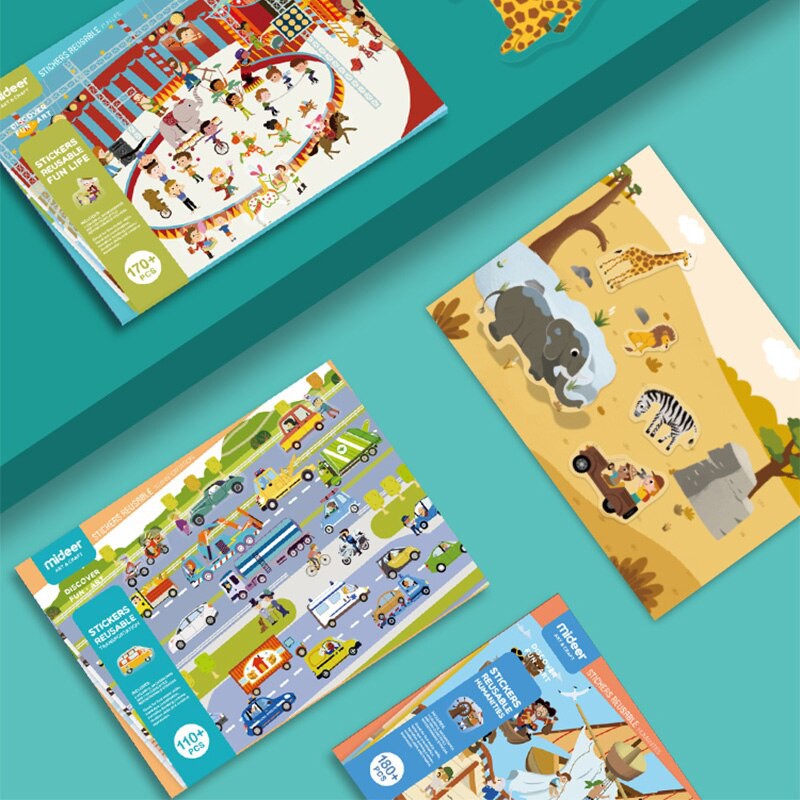 - Có thể dán nhiều lần: với sticker thông thường thì chỉ dán 1-2 lần là sẽ không thể dán được nữa, nhưng với bộ sản phẩm này bé sẽ dán được nhiều lần miễn là đó là mặt phẳng sạch và bé không làm bẩn miếng dán. Đồng thời, bé có thể dán trên các tầm nền có sãn trong bộ sản phẩm hoặc dán lên bất kỳ mặt phẳng nào như cánh tủ lạnh, ô cửa kính,..