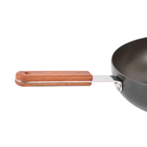 Cán chảo được trang bị tay cầm bằng gỗ có khả năng cách nhiệt rất tốt, kiểu dáng thon gọn giúp bạn thoải mái cầm nắm trong quá trình nấu nướng. Ngoài ra, phần cuối của cán chảo có lỗ, giúp bạn dễ dàng cất giữ chảo mà không làm tốn nhiều diện tích trong không gian bếp.