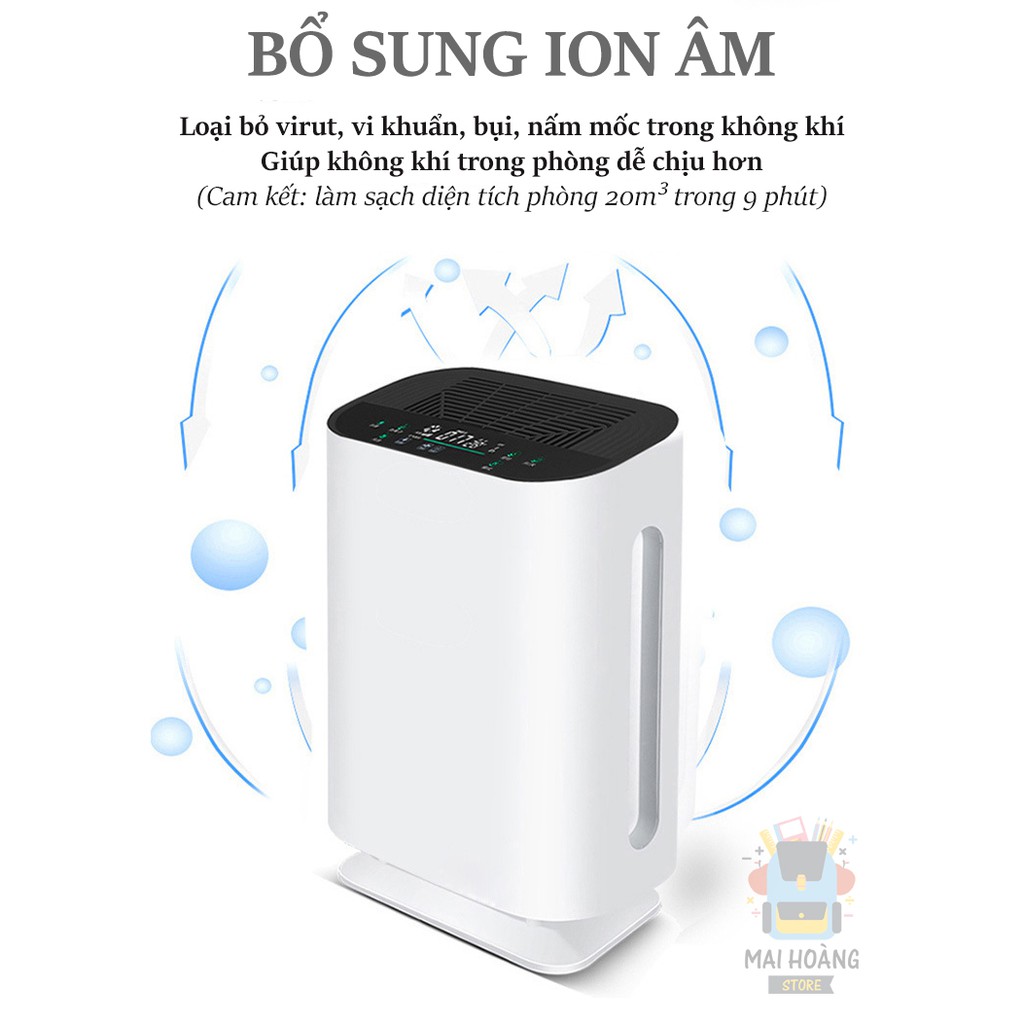 - Chức năng chính: lọc không khí, tạo ion âm, loại bỏ khói bụi, phân hủy Formaldehyd và Benzen, khử trùng không khí bằng tia UV