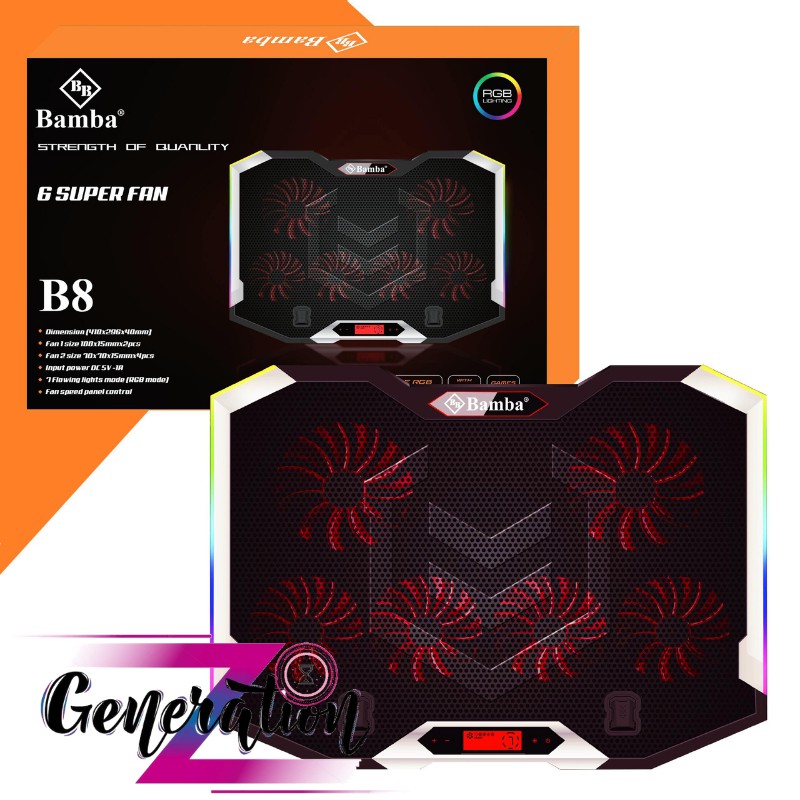 QUẠT LÀM MÁT LAPTOP BAMBA B8 (6 QUẠT ) LED RGBĐế tản nhiệt laptop Led RGB BAMBA B8