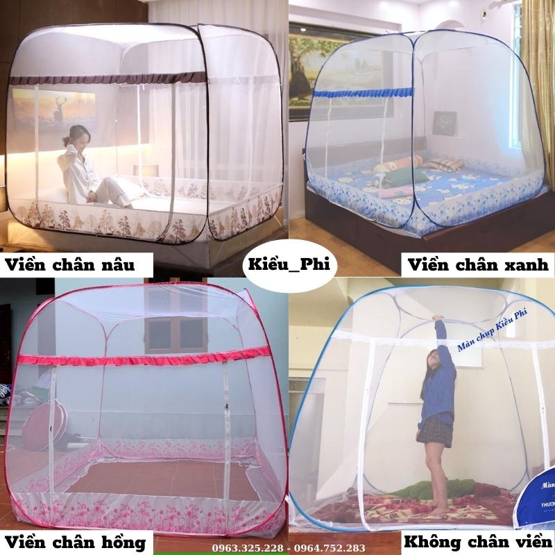 Màn chụp người lớn đỉnh vuông Kiều Phi - Mùng tự bung 1m2 1m6 1m8 2m2 tự động chống muỗi tuyệt đối