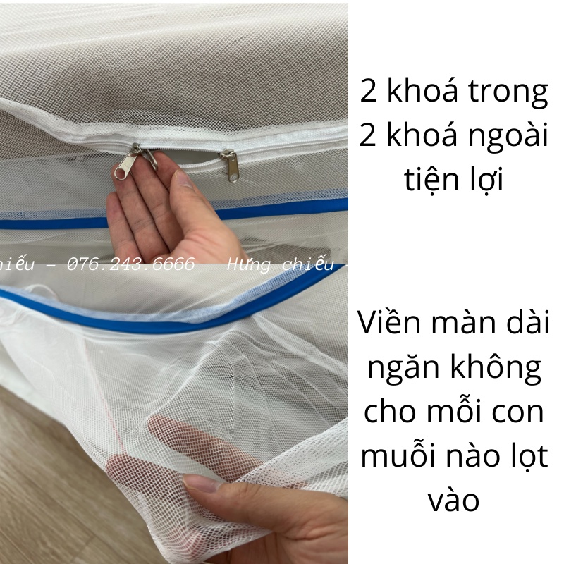 + Màn chụp tự bung có cửa giúp ra vào dễ dàng.