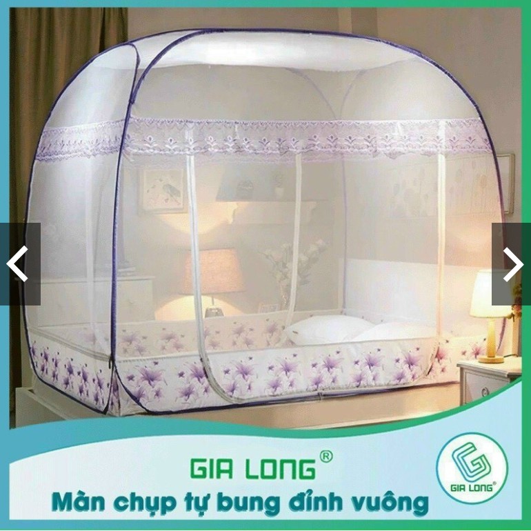 Nhà cửa & Đời sống > Chăn ga gối nệm > Mùng/ Màn chống muỗi || Màn chụp tự bung đỉnh vuông Gia Long - Mẫu mùng chụp tự bung có viền chân chống muỗi tuyệt đốiCòn hàng