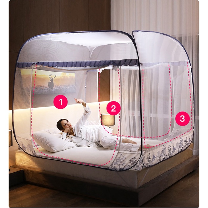 Màn chụp tự bung: Thương hiệu mùng hàng đầu VN➖ Bảo hành khung 18 tháng. Chất vải cam kết bền nhất trên thị trường, mẫu trong link có thêm viền chân vải gió chống muỗi tuyệt đối.