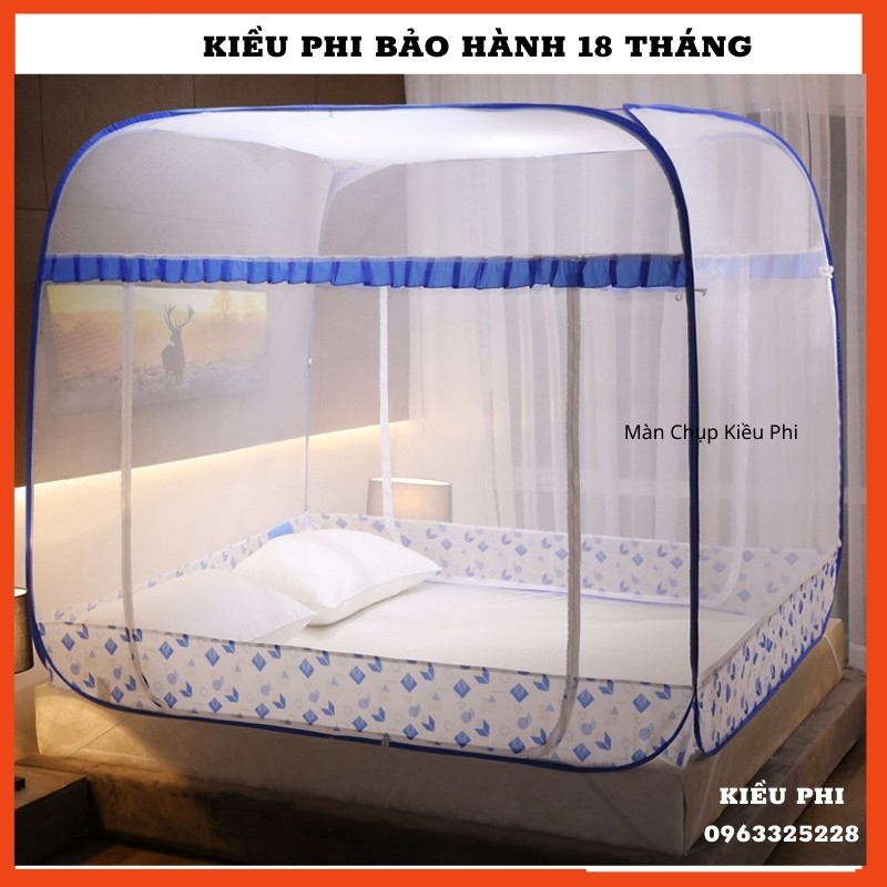 Màn chụp tự bung Kiều Phi có viền chân - 1m6 - 1m8 - 2m2 - Mùng chụp Cao Cấp Bảo Hành 18 tháng
