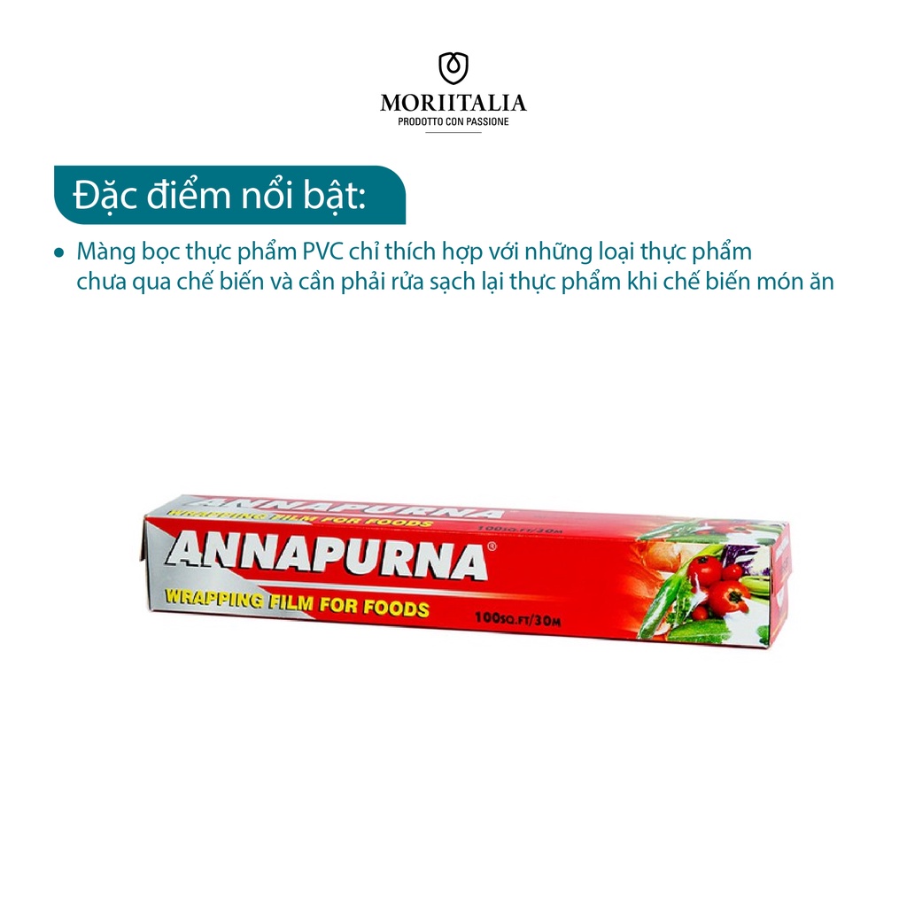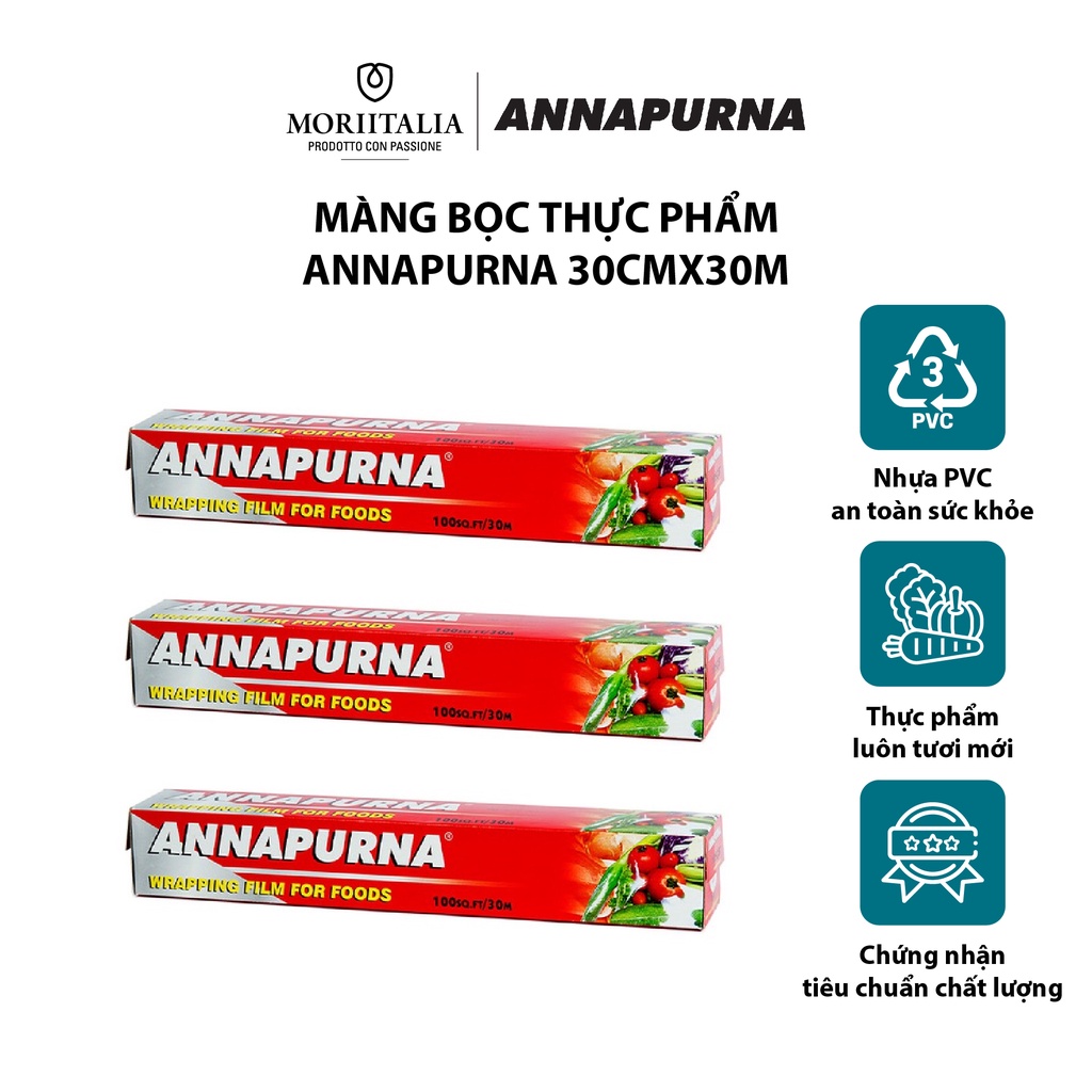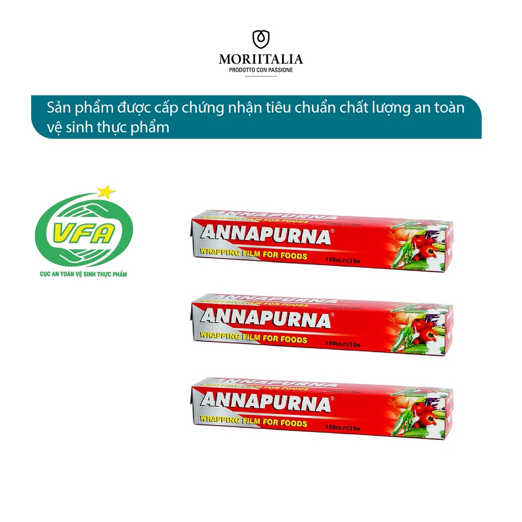 Màng bọc thực phẩm Annapurna chính hãng Moriitalia 30cmx30m - MBTP00070063Thương hiệu Annapurna bao gồm những sản phẩm màng bọc, màng nhôm được sử dụng trong các nhà hàng quán ăn, là lựa chọn hàng đầu của người tiêu dùng.