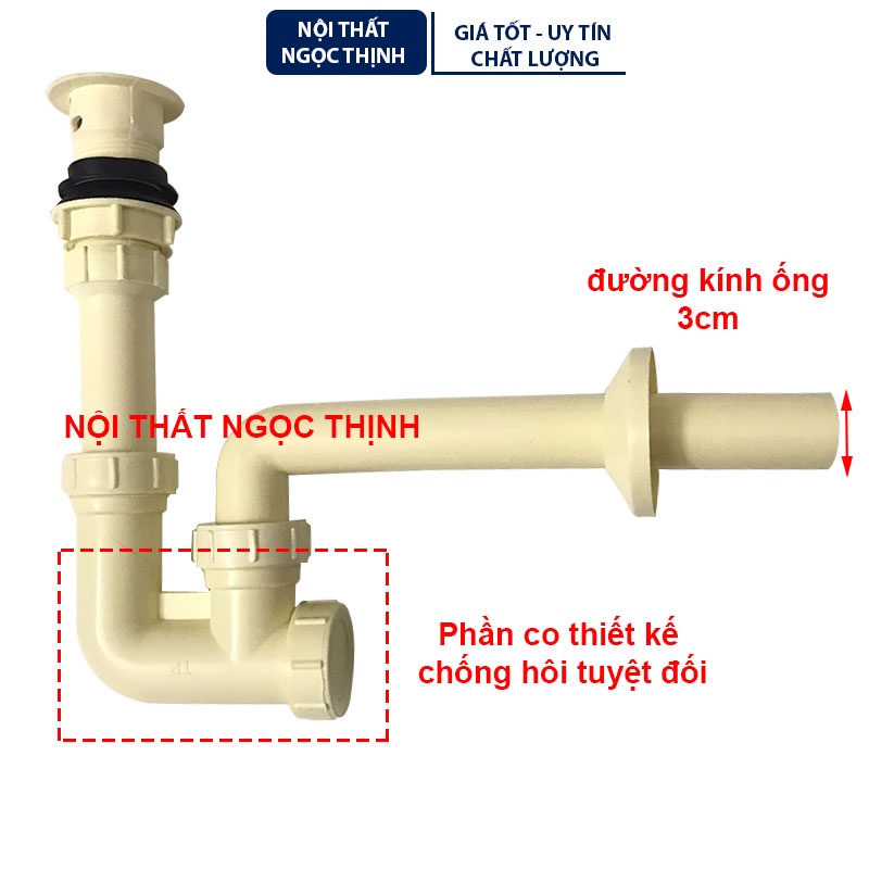 Bộ xả xi phông lavabo nhựa ABS dày cứng cáp, bền bỉ CHỐNG HÔI tuyệt đối