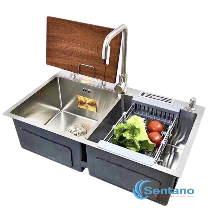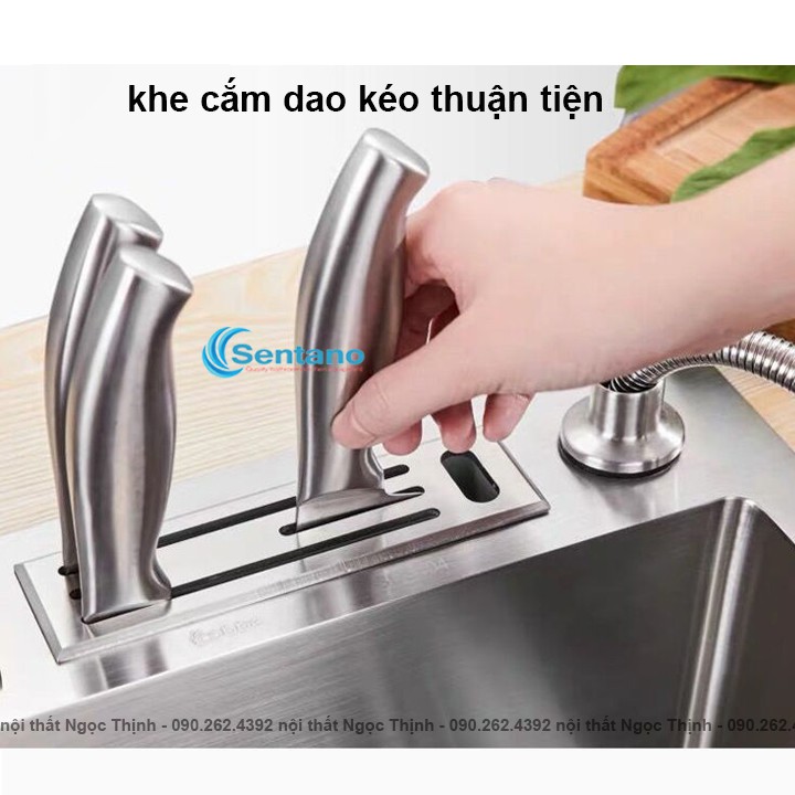 Chậu rửa chén bát đa năng inox sus 304 SENTANO SC-13 8245TD có gác thớt, khay cài dao kéo