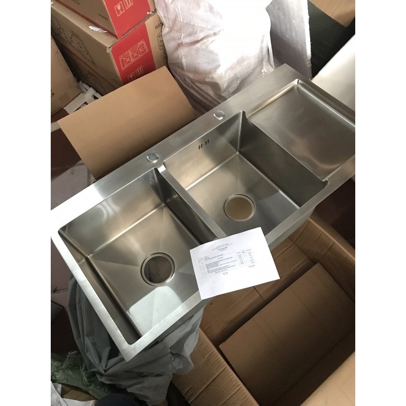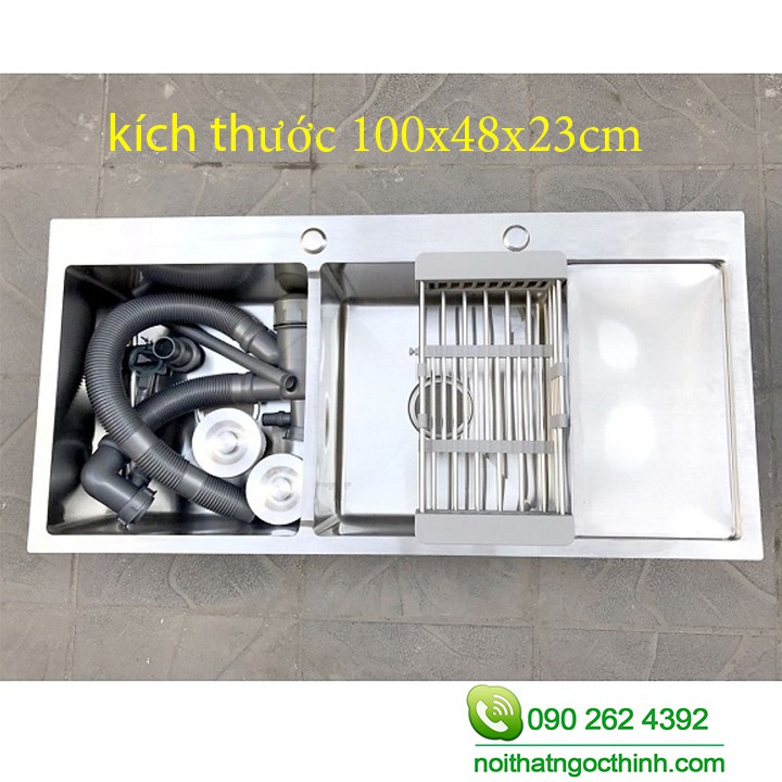 - Bồn rửa chén Được thiết kế 2 lỗ trên mặt chậu, 1 lỗ gắn vòi rửa, 1 lỗ gắn chai đựng nước rửa chén