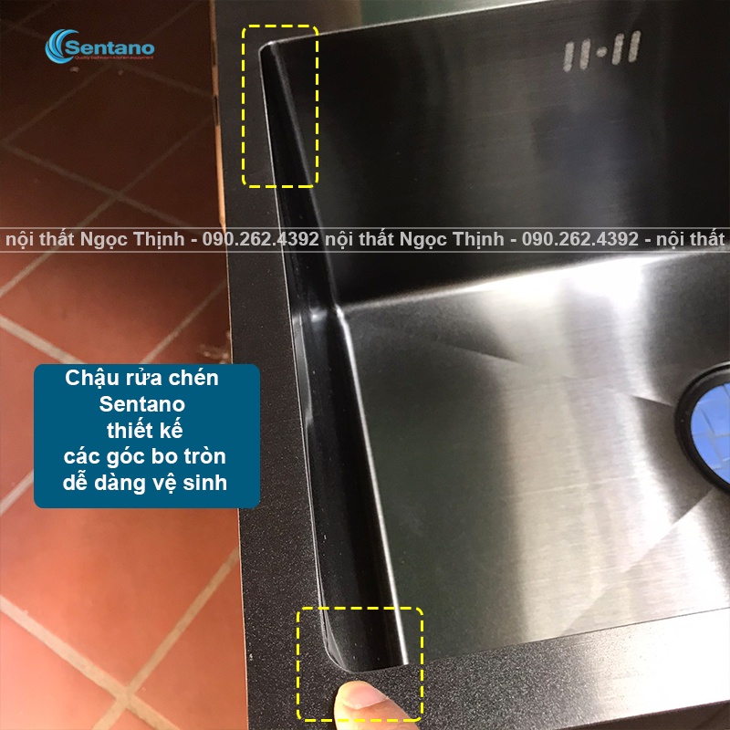 Giới thiệu Chậu rửa chén bát inox sus304 SENTANO NANO ĐEN 60x45cm chống trầy xước cao cấp tặng kèm rổ đa năng