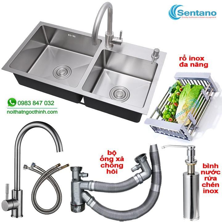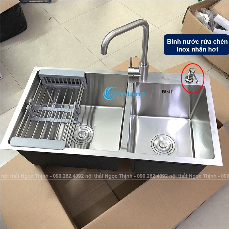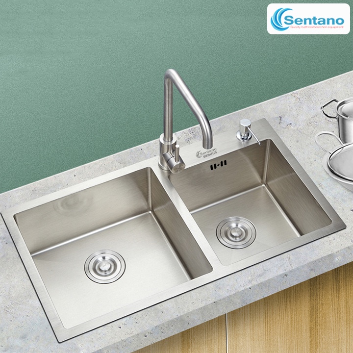 Nhà cửa & Đời sống > Dụng cụ & Thiết bị tiện ích > Chậu rửa & vòi nước || [MÃ SALE 5%]Chậu rửa chén đúc liền khối SENTANO 82x45cm 2 hộc lệch inox sus304 GIÁ RẺ - Bồn rửa chén 2 ngănCòn hàng