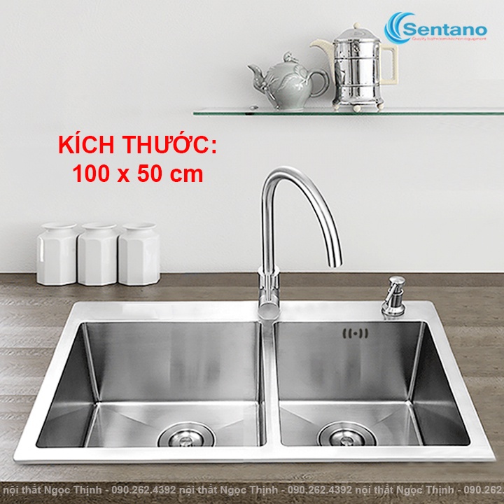 [CHẬU SIÊU TO] Bồn chậu rửa chén đúc inox cao cấp 100x50 cm 100% inox 304 hàng loại 1 có 2 ngăn cân
