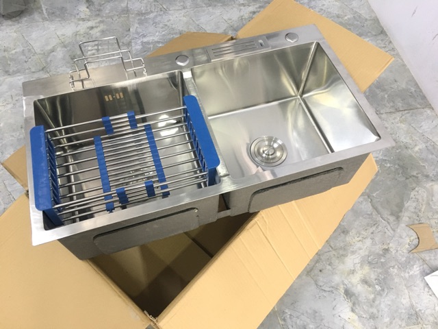 📌 1 chậu rửa chén 2 hộc lớn inox 304, kích thước 82x45x23cm, có gác cài thớt và để dắt dao