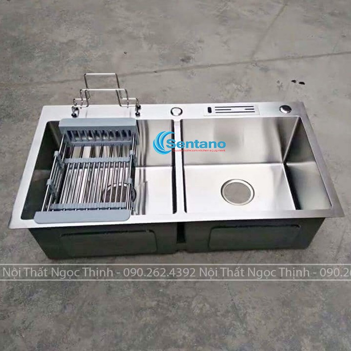 📌 1 chậu rửa chén 2 hộc lớn inox 304, kích thước 82x45x23cm, có gác cài thớt và để dắt dao