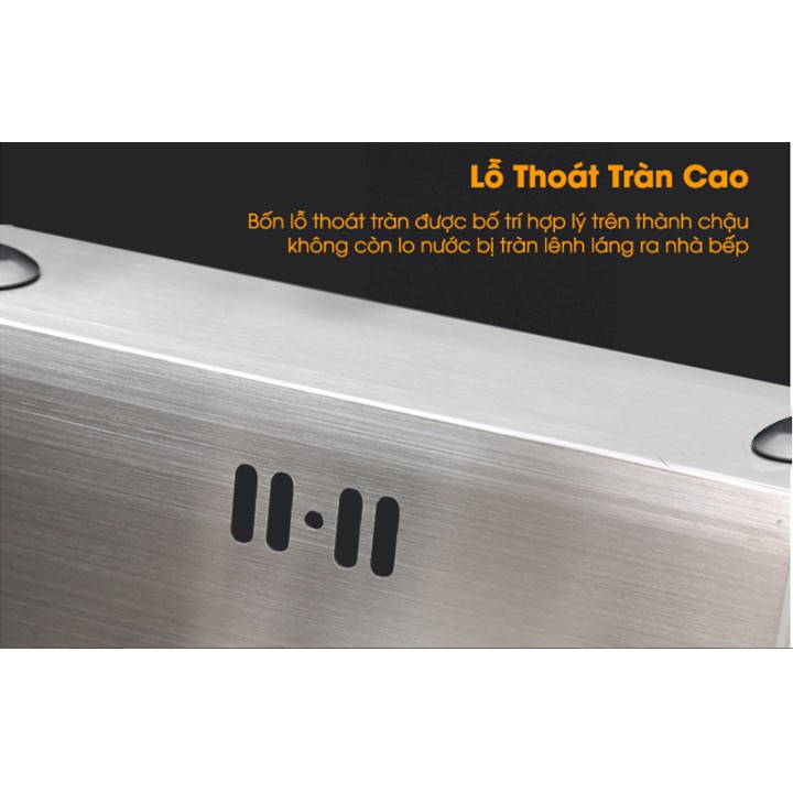 Sản phẩm bồn rửa chén được sản xuất theo công nghệ đúc liền khối inox 304 nên sản phẩm bền và sử dụng tới trên 20 năm. Bề mặt inox chắc chắn, cứng cáp.