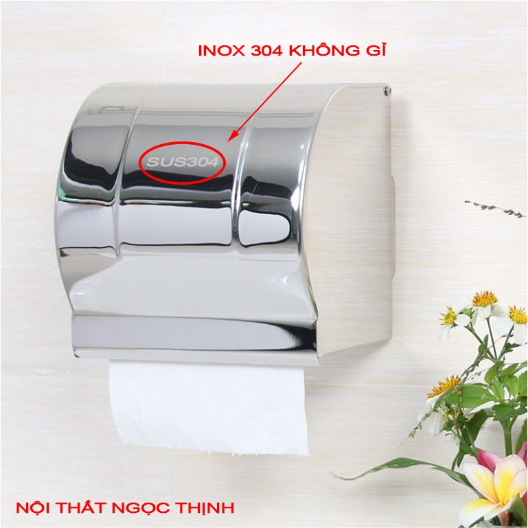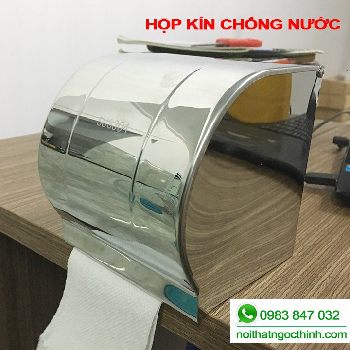 Hộp đựng giấy vệ sinh Inox 304 loại kín che chắn nước cao cấp- Chất liệu Inox SUS 304 cao cấp.