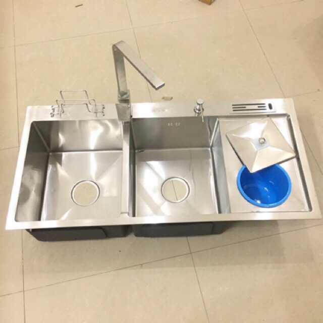 + Chậu + xả + rổ + bình inox: gồm chậu, bộ xả, rổ inox và bình đựng nước rửa chén inox