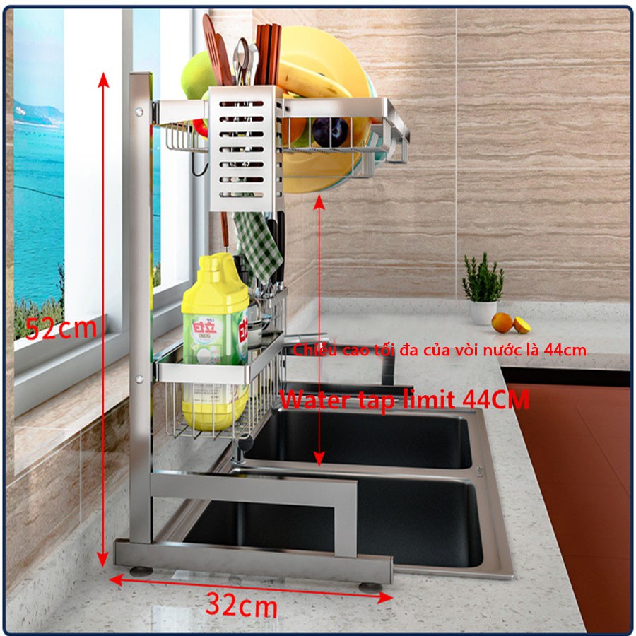 Kệ úp chén inox đa năng đặt đứng trên bồn rửa kết hợp 7 trong 1 đặt bồn rửa siêu gọn gàng ngăn nắp