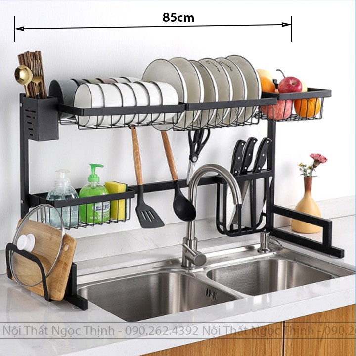 -Chịu lực lên tới 30kg, có thể để 14 chén ăn cơm, 11 cái dĩa, rổ đựng trái cây, ống đũa, 5 dao, nước rửa chén và dụng cụ, để thớt và 5 móc treo đồ