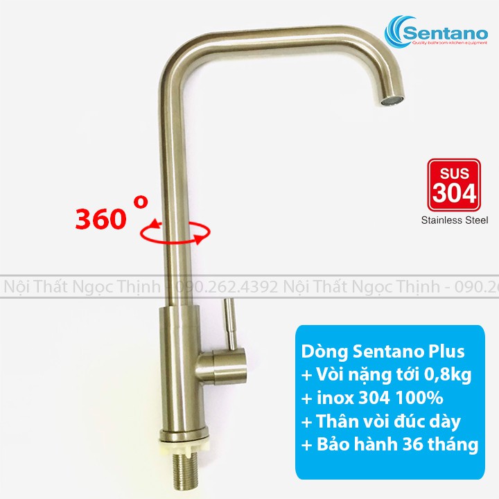 [LOẠI 1 DÒNG PLUS] Vòi rửa chén lạnh inox 304 cao cấp SENTANO STN-502 Plus ống fi24 vuông
